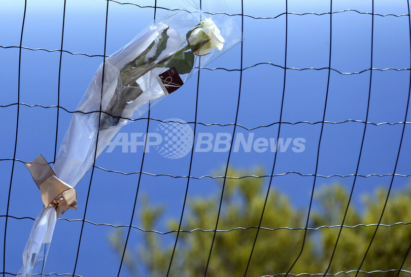写真は、ラ・トゥルビーの事故現場に捧げられたバラの花(2012年9月13日撮影)。(c)AFP/VALERY HACHE