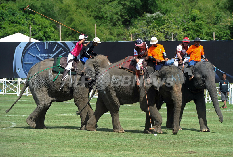 【9月16日 AFP】タイ南部のリゾート地ホアヒン(Hua Hin)で12日から16日まで、ゾウの保護に対する啓発活動として毎年恒例のエレファントポロの大会「国王杯(King's Cup)」が開かれ、ウマの代わりにゾウの背中に乗った選手らがスティックで球を打ち合った。(c)AFP