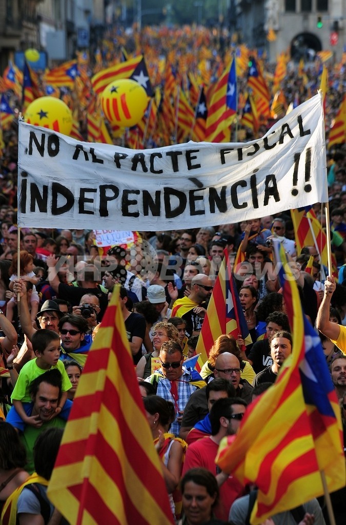 独自の言語と文化を持つスペイン北東部のカタルーニャ自治州。経済規模はポルトガルよりも大きく、スペイン全体の5分の1を占める。しかし中央政府から搾取されているという長年の不満が、現在4人に1人が失業状態という同国全体の経済危機とそれを受けた緊縮財政に対する反発で、いつになく煽られている。バルセロナでのデモには100万人を超える住民が参加。スペインからの「独立と自由」を求めた。