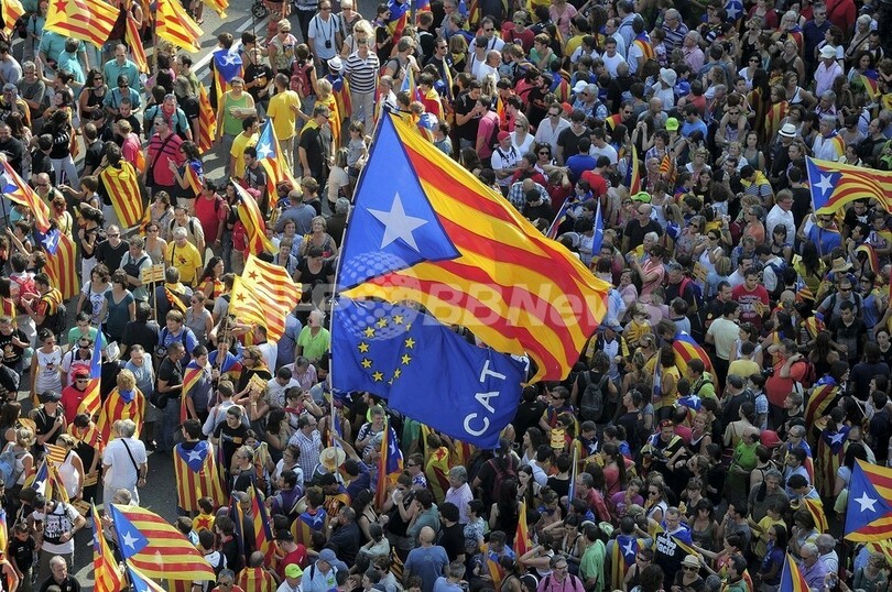 【9月17日 AFP】18世紀のスペイン継承戦争でカタルーニャ(Catalonia)が陥落した「カタルーニャの日」にあたる11日、同州の州都バルセロナ(Barcelona)では、経済危機にあえぐスペインからの「独立」や自治権拡大を求める大規模なデモに100万人以上が参加した。
