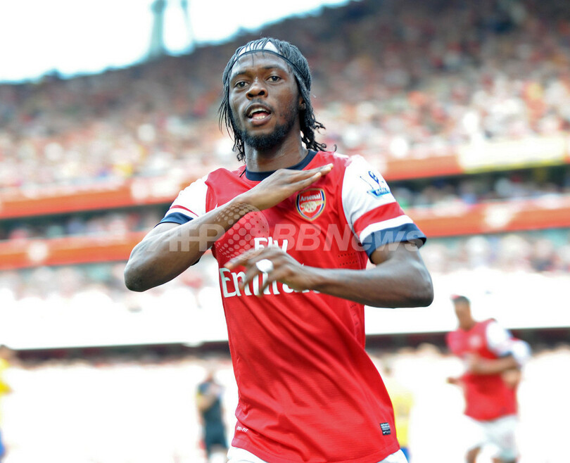 前半35分にチームの3得点目を決め、歓喜するアーセナルのジェルヴィーニョ(Gervinho、2012年9月15日撮影)。(c)AFP/OLLY GREENWOOD