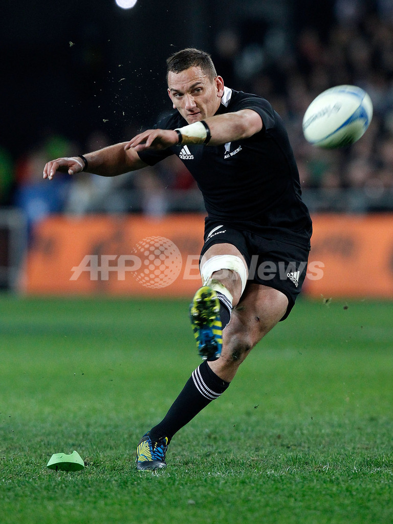 コンバージョンを狙うオールブラックスのアラン・クルーデン(Aaron Cruden、2012年9月15日撮影)。(c)AFP/Marty Melville