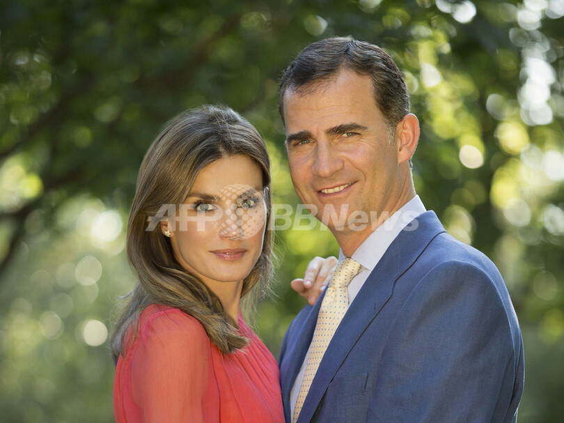 写真は、マドリード(Madrid)の公邸でポーズをとるフェリペ皇太子(Crown Prince Felipe、右)、レティシア皇太子妃(左、2012年8月1日撮影、9月15日提供)。(c)AFP/HO/CASA REAL/Cristina Garcia Rodero