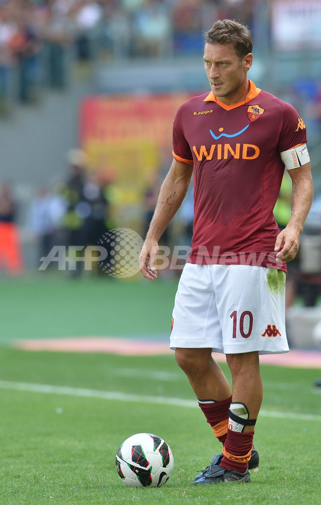 セットプレーで狙いを定めるASローマのフランチェスコ・トッティ(Francesco Totti、2012年9月16日撮影)。(c)AFP/ALBERTO PIZZOLI