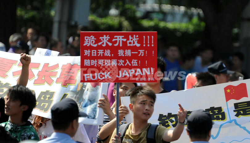 ニュース 政治・経済 北京の日本大使館前で反日デモ、15日に続き 2012年9月16日 18:01 発信地:北京/中国 [ 中国・台湾 中国 ] このニュースをシェア ‹ › ❮ 7/9 ❯ 日本政府による尖閣諸島(Senkaku Islands、中国名:釣魚島、Diaoyu Islands)の国有化を受け、北京(Beijing)の日本大使館そばで16日、反日デモが行われた。デモ参加者はビール瓶やゴルフボールなどを大使館に向けて投げ、反日スローガンを叫び、中国国歌を合唱しながら中国国旗を振って行進した(2012年9月16日撮影)。(c)AFP/GOH CHAI HIN 画像作成中 ! 【9月16日 AFP】日本政府による尖閣諸島(Senkaku Islands、中国名:釣魚島、Diaoyu Islands)の国有化を受け、北京(Beijing)の日本大使館そばで16日、反日デモが行われた。デモ参加者はビール瓶やゴルフボールなどを大使館に向けて投げ、反日スローガンを叫び、中国国歌を合唱しながら中国国旗を振って行進した。(c)AFP 政治・経済 一覧へ> メディア・報道関係・法人の方向け 写真・動画 購入のお問合せ>