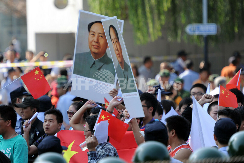ニュース 政治・経済 北京の日本大使館前で反日デモ、15日に続き 2012年9月16日 18:01 発信地:北京/中国 [ 中国・台湾 中国 ] このニュースをシェア ‹ › ❮ 3/9 ❯ 日本政府による尖閣諸島(Senkaku Islands、中国名:釣魚島、Diaoyu Islands)の国有化を受け、北京(Beijing)の日本大使館そばで16日、反日デモが行われた。デモ参加者はビール瓶やゴルフボールなどを大使館に向けて投げ、反日スローガンを叫び、中国国歌を合唱しながら中国国旗を振って行進した(2012年9月16日撮影)。(c)AFP/GOH CHAI HIN 画像作成中 ! 【9月16日 AFP】日本政府による尖閣諸島(Senkaku Islands、中国名:釣魚島、Diaoyu Islands)の国有化を受け、北京(Beijing)の日本大使館そばで16日、反日デモが行われた。デモ参加者はビール瓶やゴルフボールなどを大使館に向けて投げ、反日スローガンを叫び、中国国歌を合唱しながら中国国旗を振って行進した。(c)AFP 政治・経済 一覧へ> メディア・報道関係・法人の方向け 写真・動画 購入のお問合せ>