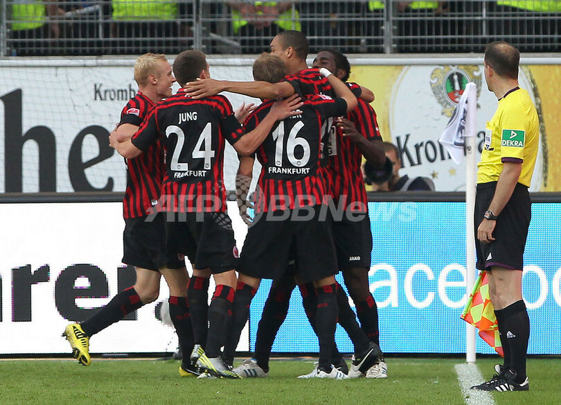 得点を喜ぶフランクフルトの選手(2012年9月16日撮影)。(c)AFP/DANIEL ROLAND