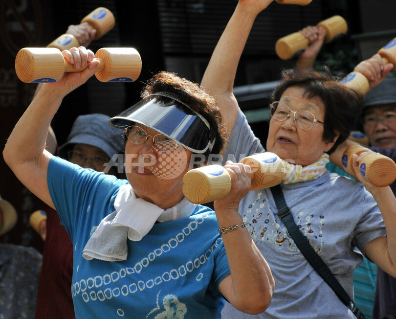 ニュース ライフ 敬老の日、木製ダンベルでエクササイズ 2012年9月17日 12:33 発信地:東京 [ アジア・オセアニア 東京 ] このニュースをシェア ‹ › ❮ 10/10 ❯ 敬老の日の17日、都内の寺の境内にお年寄りが集まり、木製のダンベルを使ったエクササイズを行った。政府発表によると、日本の65歳以上の人口は初めて3000万人を超し、推定3074万人に達した(2012年9月17日撮影)。(c)AFP/Yoshikazu TSUNO 画像作成中 ! 【9月17日 AFP】敬老の日の17日、都内の寺の境内にお年寄りが集まり、木製のダンベルを使ったエクササイズを行った。政府発表によると、日本の65歳以上の人口は初めて3000万人を超し、推定3074万人に達した。(c)AFP ライフ 一覧へ> メディア・報道関係・法人の方向け 写真・動画 購入のお問合せ>