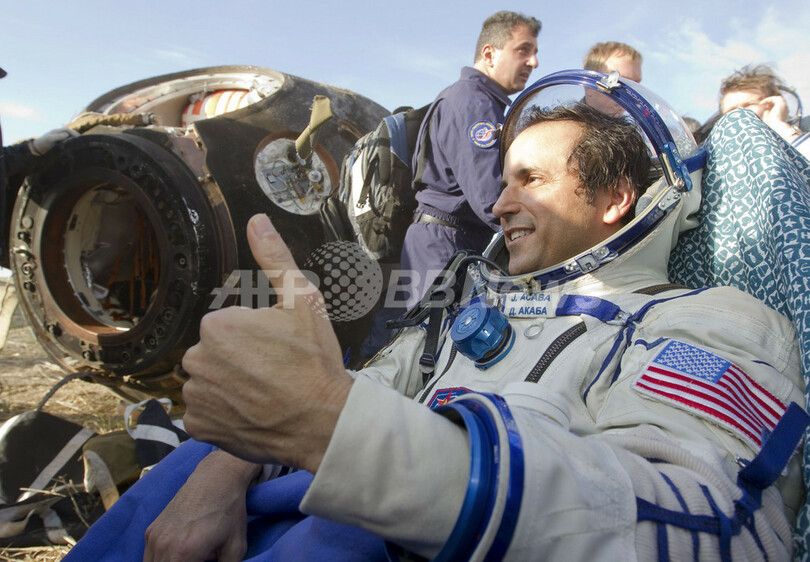 帰還したのは米国のジョセフ・アカバ(Joseph Acaba)飛行士、ロシアのゲナディ・パダルカ(Gennady Padalka)飛行士、セルゲイ・レビン(Sergei Revin)飛行士。(c)AFP