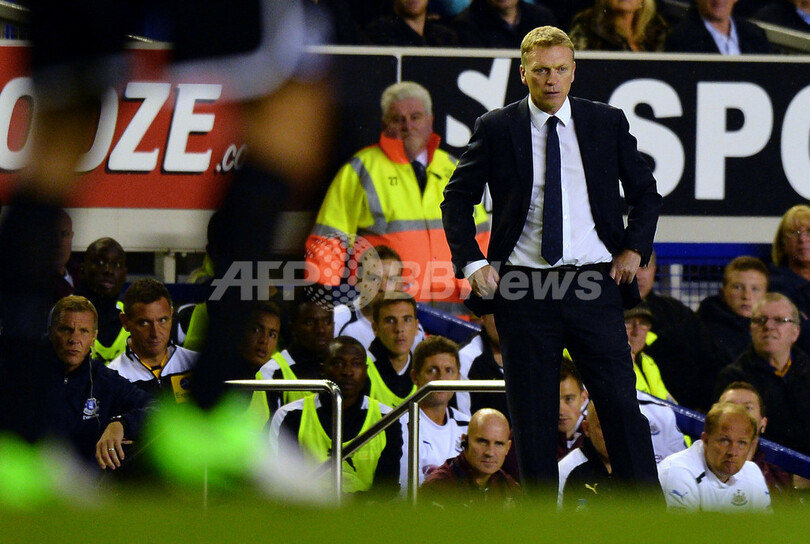 戦況を見守るエバートンのデビッド・モイーズ(David Moyes)監督(2012年9月17日撮影)。(c)AFP/PAUL ELLIS