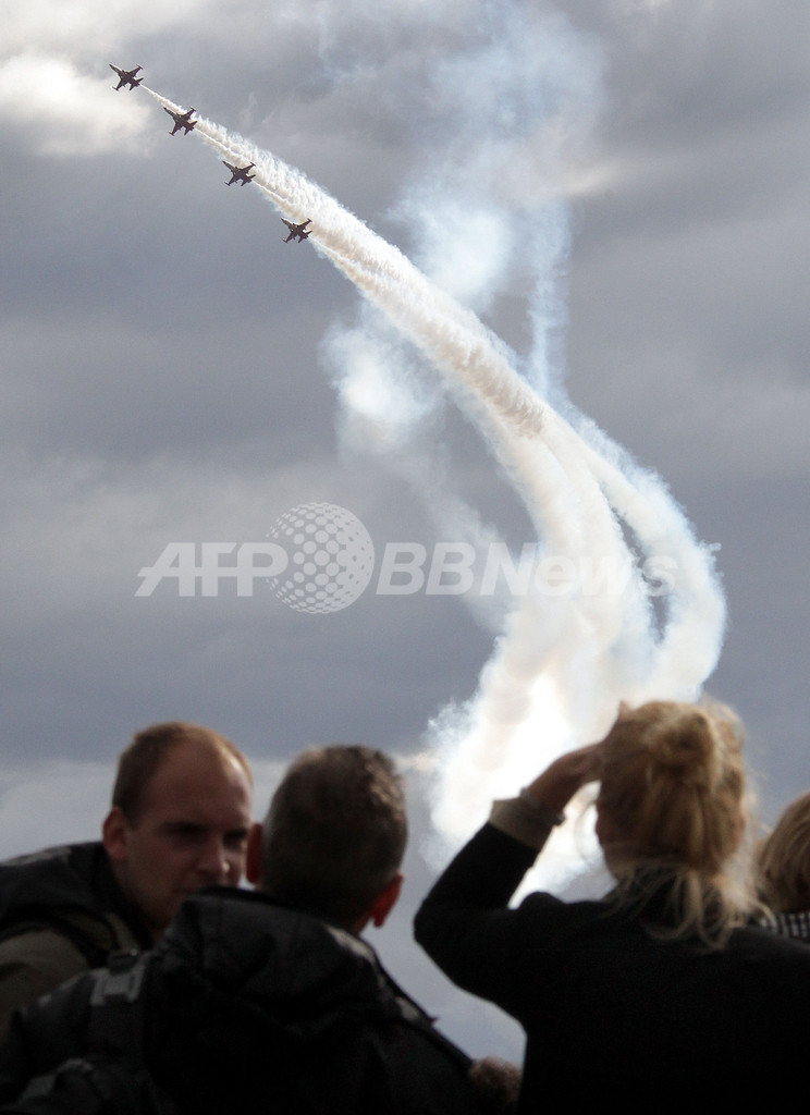ニュース 政治・経済 ベルリン国際航空宇宙ショー、圧巻のアクロバット飛行 ドイツ 2012年9月20日 16:54 発信地:シューネフェルト/ドイツ [ ヨーロッパ ドイツ ] このニュースをシェア ‹ › ❮ 10/11 ❯ 2012年ベルリン国際航空宇宙ショー(ILA)が、ドイツ・ベルリン(Berlin)近郊のシューネフェルト空港(Schoenefeld Airport)で11日から16日まで開催された。写真は、アクロバット飛行を披露するトルコ空軍の飛行隊(2012年9月15日撮影)。(c)AFP/WOLFGANG KUMM 画像作成中 ! 【9月20日 AFP】ドイツ・ベルリン(Berlin)近郊のシューネフェルト空港(Schoenefeld Airport)で、2012年ベルリン国際航空宇宙ショー(ILA)が11日から16日まで開催された。(c)AFP 政治・経済 一覧へ> メディア・報道関係・法人の方向け 写真・動画 購入のお問合せ>