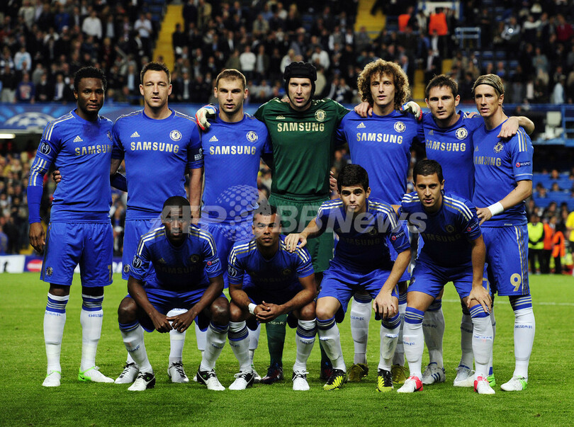 試合開始前の写真撮影に臨むチェルシーの選手(2012年9月19日撮影)。(c)AFP/GLYN KIRK