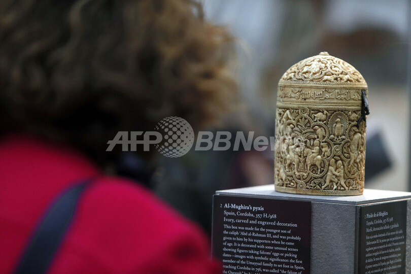 写真は「アル・ムギラの銘のある小箱(Al-Mughira's pyxis)」を見つめる女性(2012年9月17日撮影)。(c)AFP/KENZO TRIBOUILLARD