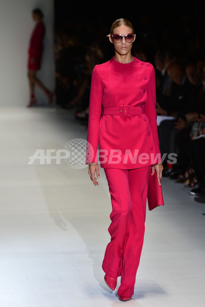 【11月6日 AFP】ランウェイに溢れる、ピンクやディープブルー、エメラルドグリーン、イエロー…。「グッチ(Gucci)」は、鮮やかなカラーを大胆に取り入れたロングドレスやスーツを13年春夏コレクションで、提案した。