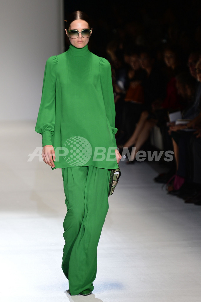【11月6日 AFP】ランウェイに溢れる、ピンクやディープブルー、エメラルドグリーン、イエロー…。「グッチ(Gucci)」は、鮮やかなカラーを大胆に取り入れたロングドレスやスーツを13年春夏コレクションで、提案した。