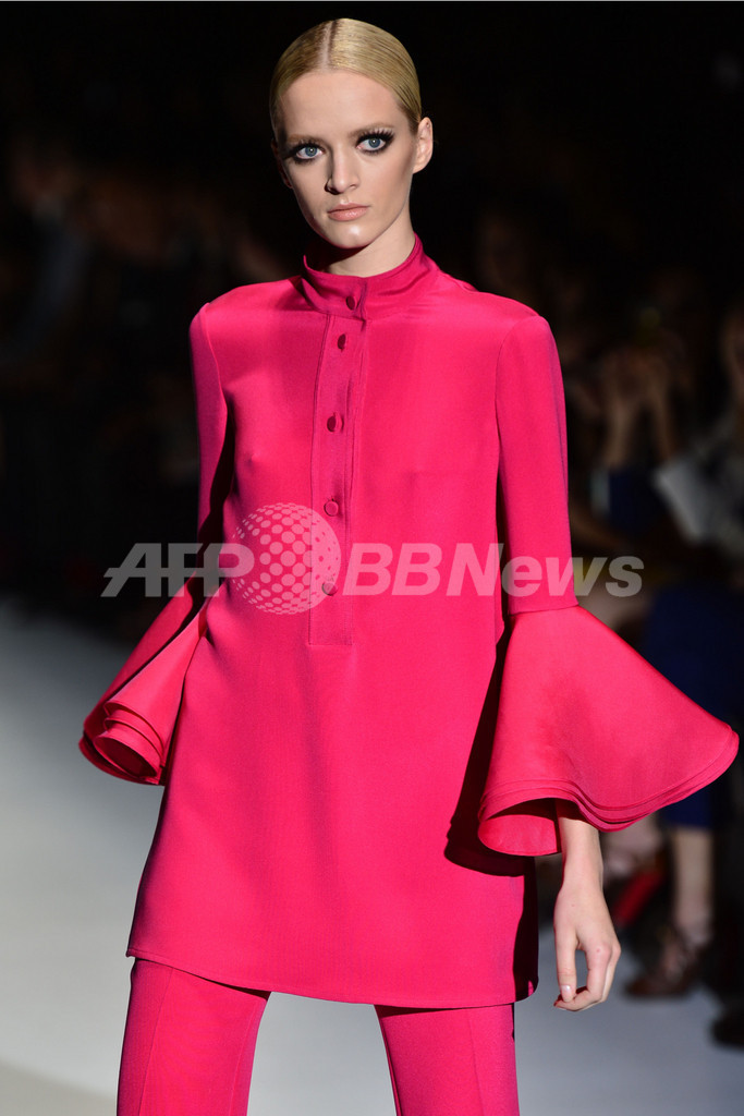 【11月6日 AFP】ランウェイに溢れる、ピンクやディープブルー、エメラルドグリーン、イエロー…。「グッチ(Gucci)」は、鮮やかなカラーを大胆に取り入れたロングドレスやスーツを13年春夏コレクションで、提案した。