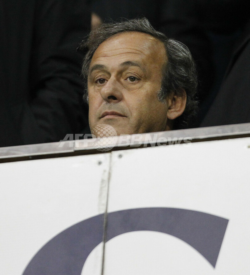 試合を観戦する欧州サッカー連盟(UEFA)のミシェル・プラティニ(Michel Platini)会長(2012年9月20日撮影)。(c)AFP/IAN KINGTON