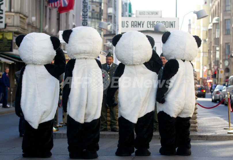 ニュース ライフ こぼれ話 🐼パンダ パンダの群れ、ベルリン観光でおおはしゃぎ? 2012年9月21日 12:15 発信地:ベルリン/ドイツ [ ヨーロッパ ドイツ ] このニュースをシェア ‹ › ❮ 3/4 ❯ 独ベルリン(Berlin)にある冷戦時代の東西分断の検問所「チェックポイント・チャーリー(Checkpoint Charlie)」跡の前でデモを行う、ジャイアントパンダに変身した動物保護団体「ワイルドエイド(WildAid)」のメンバー(2012年9月20日撮影)。(c)AFP/KAY NIETFELD 画像作成中 ! 【9月21日 AFP】ベルリン(Berlin)で20日、ジャイアントパンダの着ぐるみに身を包んだ動物保護団体「ワイルドエイド(WildAid)」のメンバーが観光バスなどで市内各所を回り、絶滅の恐れがあるパンダの保護を呼び掛けた。(c)AFP ライフ 一覧へ> メディア・報道関係・法人の方向け 写真・動画 購入のお問合せ>