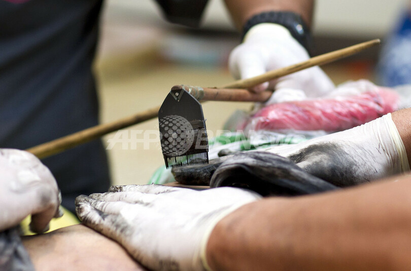 【9月25日 AFP】19世紀にやって来たキリスト教の宣教師らによって野蛮な異教徒の習慣として禁じられたタトゥーが、南太平洋のクック諸島に復活しつつある。