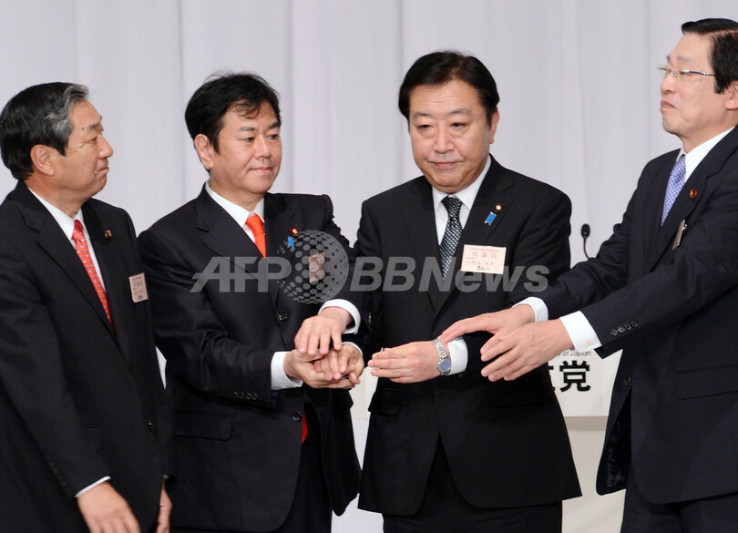 ニュース 政治・経済 民主党代表選、野田首相が再選 2012年9月21日 16:38 発信地:東京 [ アジア・オセアニア 東京 ] このニュースをシェア ‹ › ❮ 2/2 ❯ 都内で行われた民主党代表選で、再選が決まり他の候補者らと手を合わせる野田佳彦(Yoshihiko Noda)首相(右から2人目、2012年9月21日撮影)。(c)AFP/TOSHIFUMI KITAMURA 画像作成中 ! 【9月21日 AFP】都内で21日午後に投開票が行われた民主党代表選で、野田佳彦(Yoshihiko Noda)首相が再選された。(c)AFP 政治・経済 一覧へ> メディア・報道関係・法人の方向け 写真・動画 購入のお問合せ>