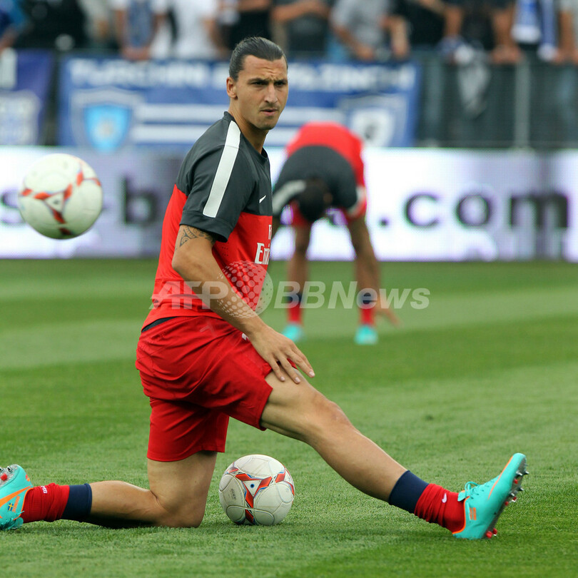 試合前の練習に臨むパリ・サンジェルマンのズラタン・イブラヒモビッチ(Zlatan Ibrahimovic、2012年9月22日撮影)。(c)AFP/PASCAL POCHARD-CASABIANCA