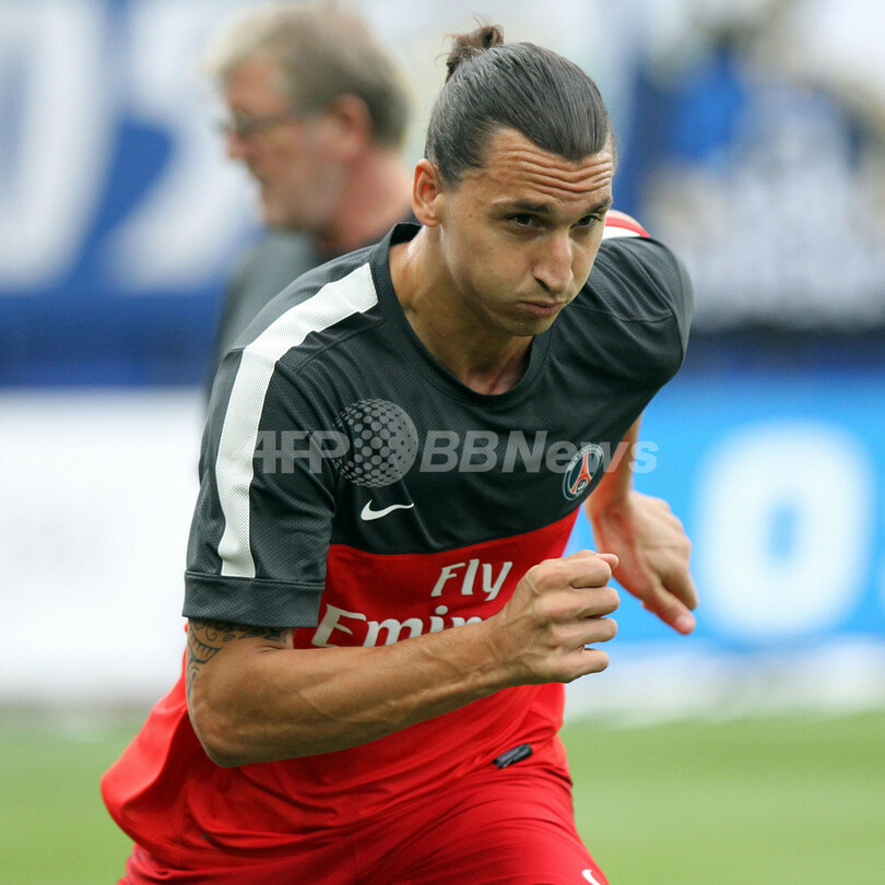 試合前の練習に臨むパリ・サンジェルマンのズラタン・イブラヒモビッチ(Zlatan Ibrahimovic、2012年9月22日撮影)。(c)AFP/PASCAL POCHARD-CASABIANCA