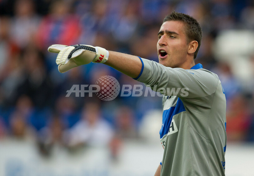 指示を出す1899ホッフェンハイムのGKコーエン・カスティールス(Koen Casteels、2012年9月23日撮影)。(c)AFP/UWE ANSPACH