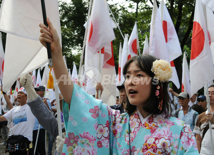 【9月22日 AFP】東京都港区にある中国大使館近くで22日、尖閣諸島(Senkaku Islands、中国名:釣魚島、Diaoyu Islands)の領有権問題をめぐる中国政府への抗議デモが行われ、約800人が参加した。