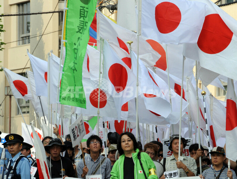 【9月22日 AFP】東京都港区にある中国大使館近くで22日、尖閣諸島(Senkaku Islands、中国名:釣魚島、Diaoyu Islands)の領有権問題をめぐる中国政府への抗議デモが行われ、約800人が参加した。