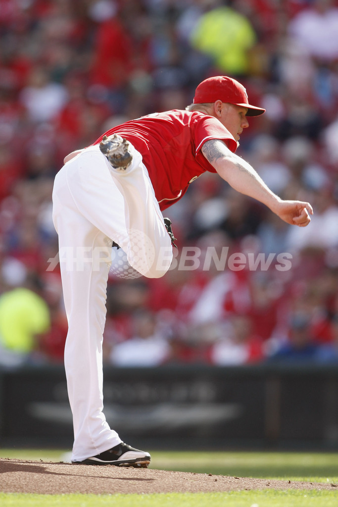 ロサンゼルス・ドジャース戦に先発登板したシンシナティ・レッズのマット・ラトス(Mat Latos、2012年9月22日撮影)。(c)AFP/Getty Images/John Grieshop