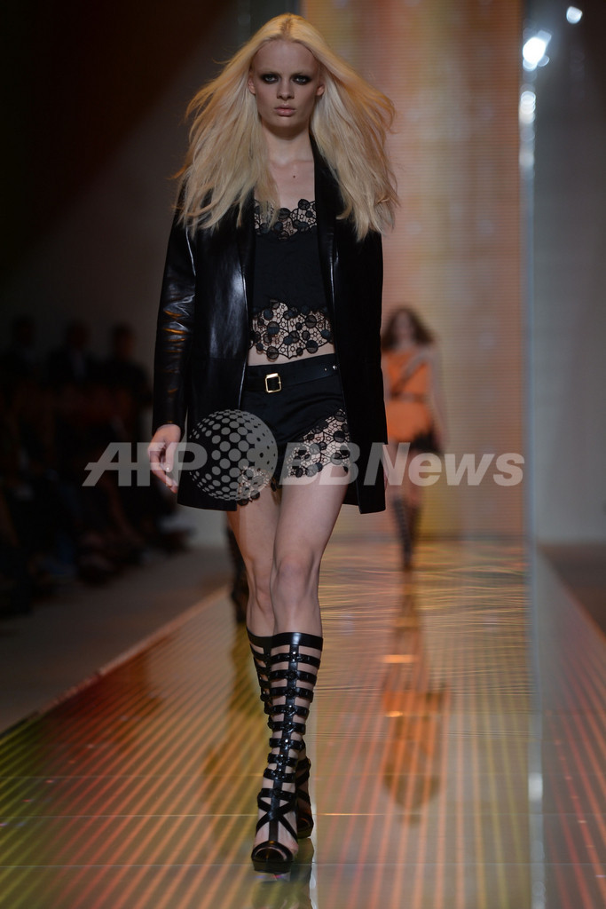 【9月24日 AFP】イタリア・ミラノ市内で19日から25日まで13年春夏ミラノコレクションが開かれている。21日にはドナテラ・ヴェルサーチ(Donatella Versace)が手がける「ヴェルサーチ(VERSACE)」が新作を発表した。(c)AFP