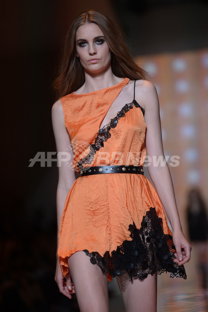 【9月24日 AFP】イタリア・ミラノ市内で19日から25日まで13年春夏ミラノコレクションが開かれている。21日にはドナテラ・ヴェルサーチ(Donatella Versace)が手がける「ヴェルサーチ(VERSACE)」が新作を発表した。(c)AFP