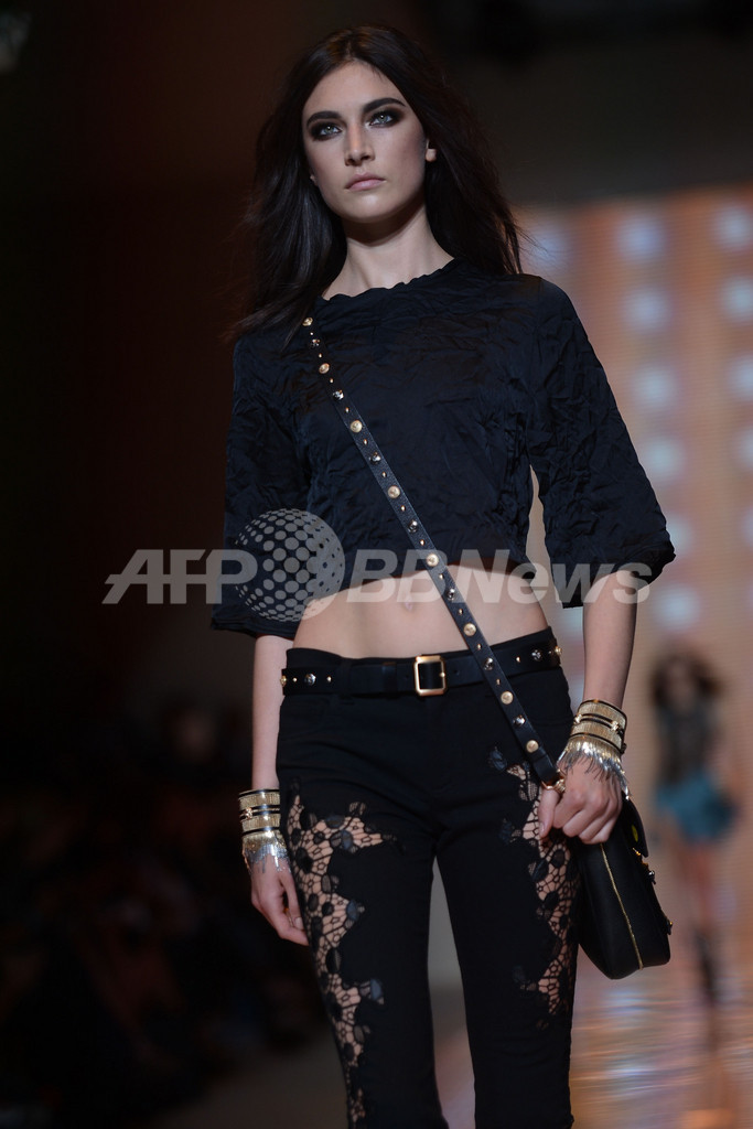 【9月24日 AFP】イタリア・ミラノ市内で19日から25日まで13年春夏ミラノコレクションが開かれている。21日にはドナテラ・ヴェルサーチ(Donatella Versace)が手がける「ヴェルサーチ(VERSACE)」が新作を発表した。(c)AFP