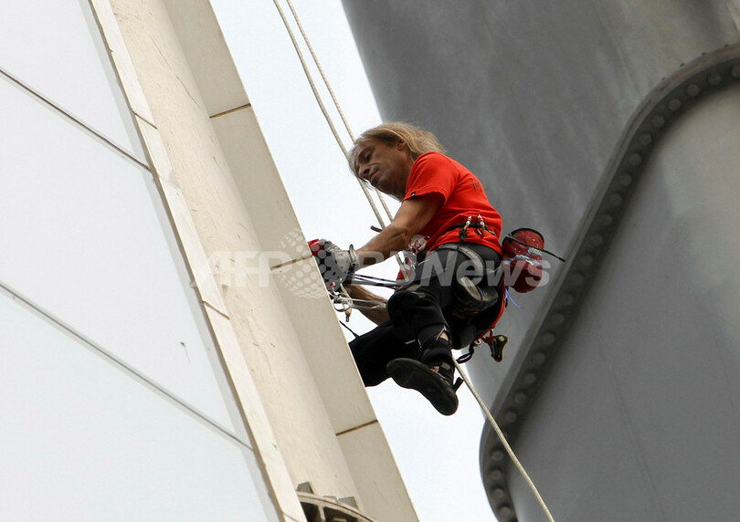 【9月23日 AFP】世界各地の高層建築に登り、フランスの「スパイダーマン(Spiderman)」の異名を取るアラン・ロベール(Alain Robert)さんが22日、中国中部の河南(Henan)省鄭州(Zhengzhou)にあるテレビ塔「中原福塔(Central Plains Fortaleza)」(高さ388メートル)に登った。