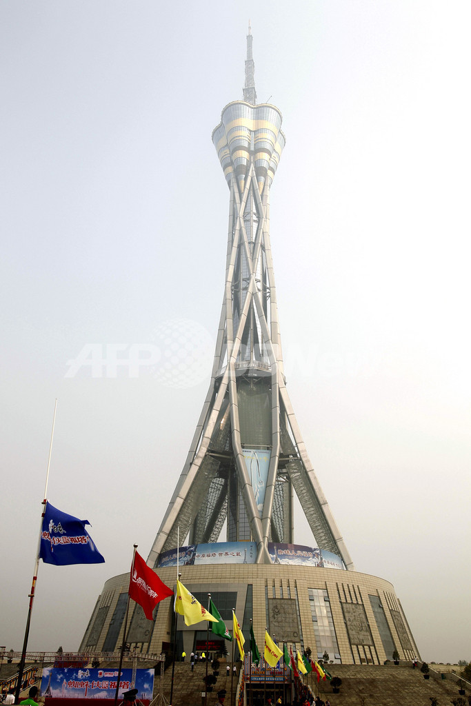 中国国営メディアによると、ロベールさんは約2時間で地上268メートルの高さにある展望デッキまで到達した。写真は中原福塔(2012年9月22日撮影)。(c)AFP