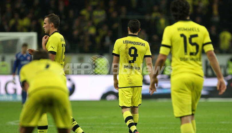 試合を引き分けで終え、ピッチを後にするボルシア・ドルトムントの選手(2012年9月25日撮影)。(c)AFP/DANIEL ROLAND