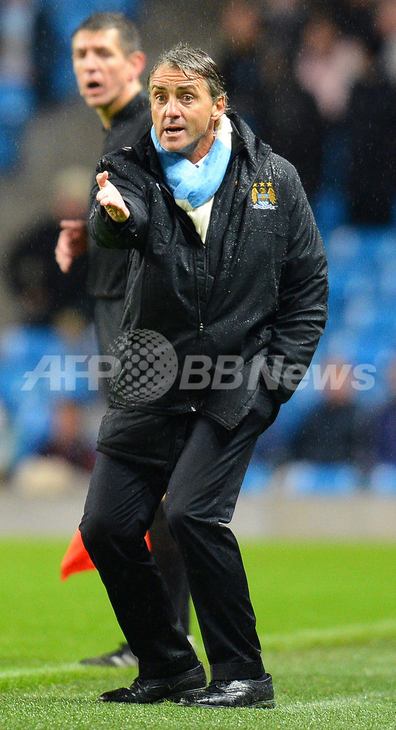 指示を出すマンチェスター・シティのロベルト・マンチーニ(Roberto Mancini)監督(2012年9月25日撮影)。(c)AFP/ANDREW YATES