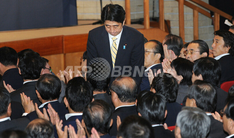 新総裁に選出された後のあいさつで、安倍氏は「政権奪還は自民党のためではなく、強く豊かな日本をつくっていくためだ。日本に生まれたことを幸せだと思える日本をつくりたい」と抱負を語った。(c)AFP