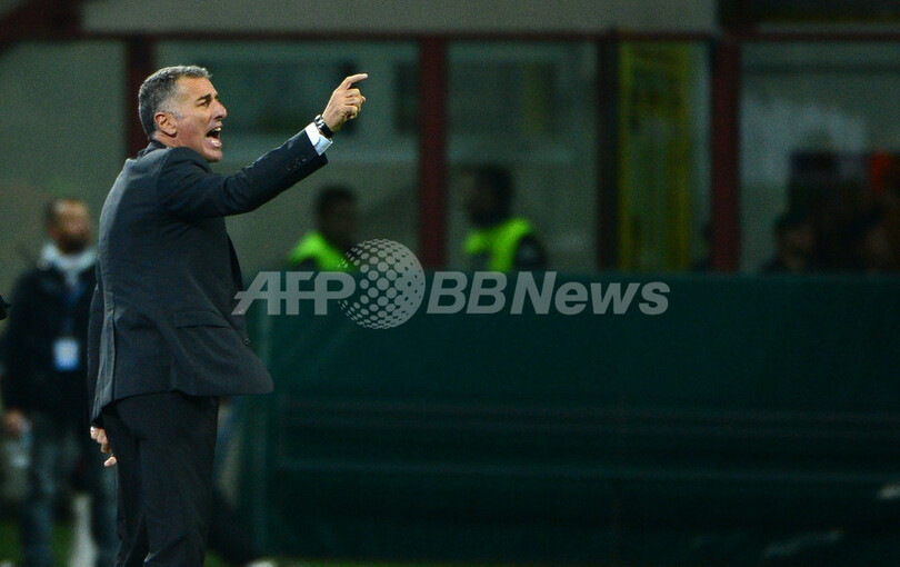 指示を出すACミランのマウロ・ タソッティ(Mauro Tassotti)アシスタントコーチ(2012年9月26日撮影)。(c)AFP/OLIVIER MORIN