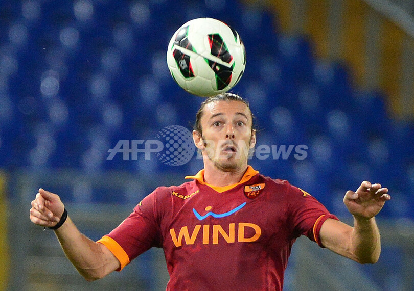 ボールをコントロールするASローマのフェデリコ・バルツァレッティ(Federico Balzaretti、2012年9月26日撮影)。(c)AFP/GABRIEL BOUYS