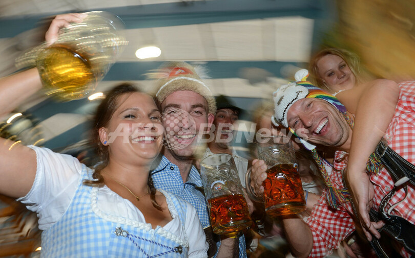 【9月28日 AFP】ドイツ・バイエルン(Bayern)州の州都ミュンヘン(Munich)で開催中の世界最大のビールの祭典「オクトーバーフェスト(Oktoberfest)」。来場者は10月7日までの祭典を大いに楽しんでいるようだ。(c)AFP