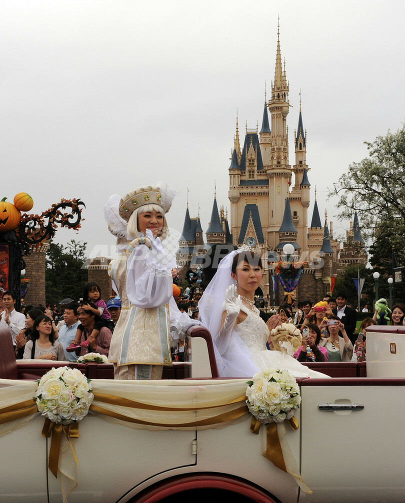 ニュース ライフ あなたもシンデレラになれる!ディズニーランド初の結婚式 2012年9月28日 20:08 発信地:千葉 [ アジア・オセアニア 千葉 ] このニュースをシェア ‹ › ❮ 9/10 ❯ 千葉県浦安市の東京ディズニーランド(Tokyo Disneyland)で28日、会社員の安孫子高行(Takayuki Abiko)さんと加越真由美(Mayumi Kagoshi)さんの結婚式が行われた。一般カップルがディズニーランドで挙式するのは開園以来、初めて(2012年9月28日撮影)。(c)AFP/Yoshikazu TSUNO 画像作成中 ! 【9月28日 AFP】千葉県浦安市の東京ディズニーランド(Tokyo Disneyland)で28日、新郎の安孫子高行(Takayuki Abiko)さんと新婦の加越真由美(Mayumi Kagoshi)さんの結婚式が行われた。一般のカップルがディズニーランドで挙式するのは開園以来、初めて。(c)AFP ライフ 一覧へ> メディア・報道関係・法人の方向け 写真・動画 購入のお問合せ>