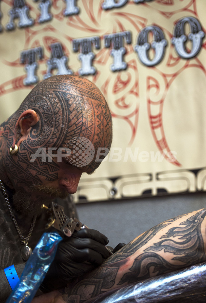 【9月30日 AFP】英ロンドン(London)東部タバコ・ドック(Tobacco Dock)で「国際ロンドン・タトゥー・コンベンション」(International London Tattoo Convention)が開かれ、世界的に有名なタトゥーアーティストや愛好家が一堂に会した。同イベントは毎年開催されており、今年で8回目。 (c)AFP