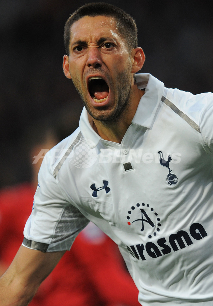 後半7分にチームの3得点目を決め歓喜するトッテナム・ホットスパーのクリント・デンプシー(Clint Dempsey、2012年9月29日撮影)。(c)AFP/ANDREW YATES