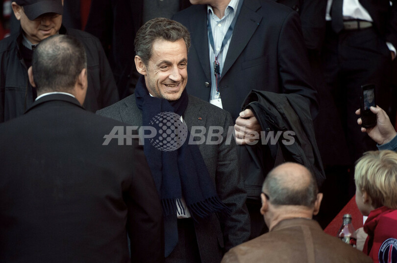 試合の観戦に訪れたニコラ・サルコジ(Nicolas Sarkozy)前仏大統領(2012年9月29日撮影)。(c)AFP/BERTRAND LANGLOIS