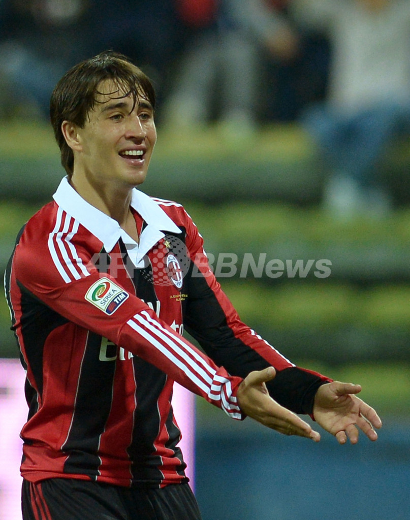 試合に臨むACミランのボージャン・クルキッチ(Bojan Krkic、2012年9月29日撮影)。(c)AFP/ALBERTO PIZZOLI