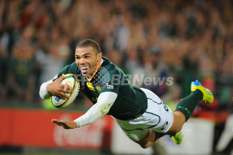 キックではなくランに重点を置く戦術に変更したスプリングボクスは、ブライアン・ハバナ(Bryan Habana)が3つのトライを決めるなど、合計5トライを奪い、ここまで5連敗を喫していたワラビーズから白星を挙げた。(c)AFP