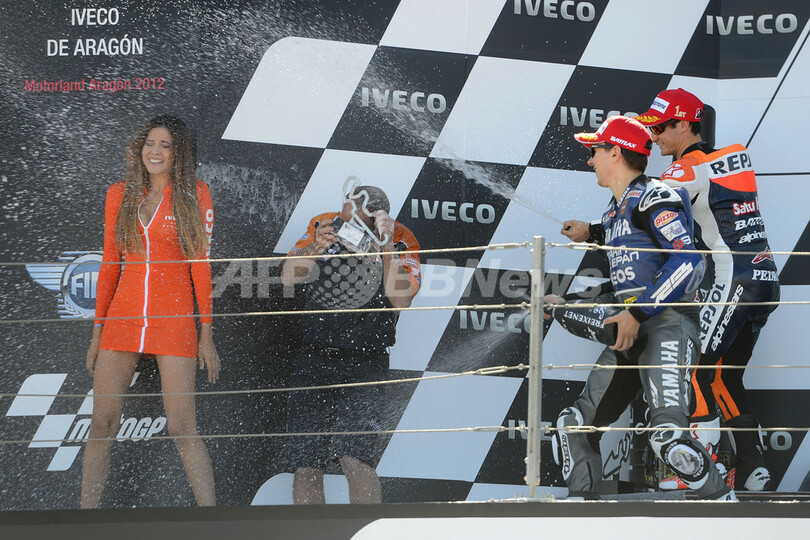 【10月1日 AFP】世界ロードレース選手権(WGP 2012)第14戦アラゴンGPは30日、スペインのアルカニス(Alcaniz)でMotoGPクラスの決勝が行われ、レプソル・ホンダ(Repsol Honda)のダニ・ペドロサ(Dani Pedrosa)が42分10秒444で優勝を飾った。