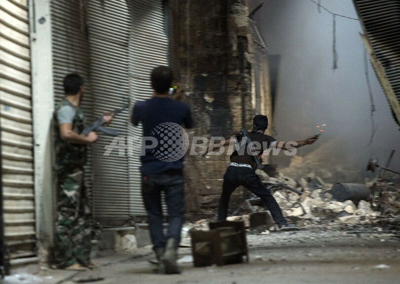 アレッポの反体制派は27日夜から、旧市街の中心部にあるウマイヤド・モスク(Umayyad Mosque)に向かって攻勢をかけている。AFPの取材に応じた反体制派の戦闘員は、歴史地区への被害は認識しているが、戦闘は続行すると述べた。(c)AFP