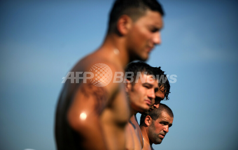 ニュース ライフ こぼれ話 全身ぬるぬるの伝統格闘技オイルレスリング、復活願い大会 2012年10月1日 12:57 発信地:チェルナ/ブルガリア [ ヨーロッパ ブルガリア ] このニュースをシェア ‹ › ❮ 6/7 ❯ ブルガリア東部チェルナ(Cherna)で9月30日、全身に油を塗って闘う「オイルレスリング」の大会が開かれた。オイルレスリングはトルコの国技として有名だが、バルカン半島にも伝統競技として伝わる。今回のチェルナでの大会は、オイルレスリング伝統の復活を願って開催された。(2012年9月30日撮影)。(c)AFP/NIKOLAY DOYCHINOV 画像作成中 ! 【10月1日 AFP】ブルガリア東部チェルナ(Cherna)で9月30日、全身に油を塗って闘う「オイルレスリング」の大会が開かれた。オイルレスリングはトルコの国技として有名だが、バルカン半島にも伝統競技として伝わる。今回のチェルナでの大会は、オイルレスリング伝統の復活を願って開催された。(c)AFP ライフ 一覧へ> メディア・報道関係・法人の方向け 写真・動画 購入のお問合せ>